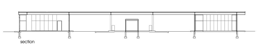 The pillars were made with steel plates welded in the flat metal roof supports. Glass and brick are primarily used on the ends and in the center to create structural elements assembly.