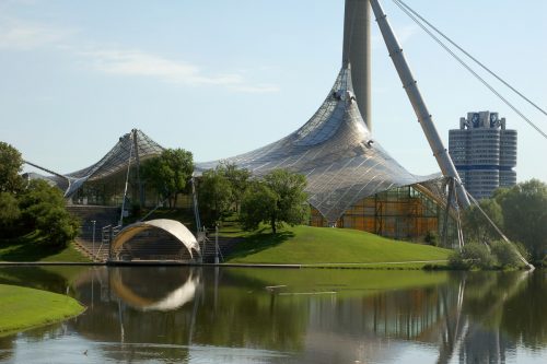 The Munich Olympic Park, built for the event is in the area of the city known as “Oberwiesenfeld”, “High Meadow Country” or “Mountain of Debris” because during the Second World War was a military ground It was destroyed and debris created this mountain. Currently continues to serve as the venue for cultural, social or religious events.