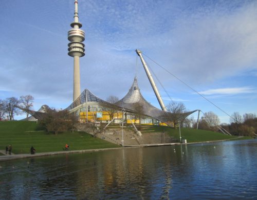 The concrete tower with 290 meters high was the work of Behnisch, as well as the park crossed by the Nymphenburg pore in the center a small pond.