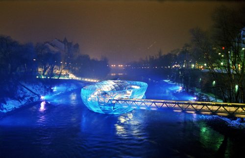 Located in a turn of the Mur River in the city of Graz, Austria, just 80km from Salzburg, this magnificent bridge connecting the ends of the city.