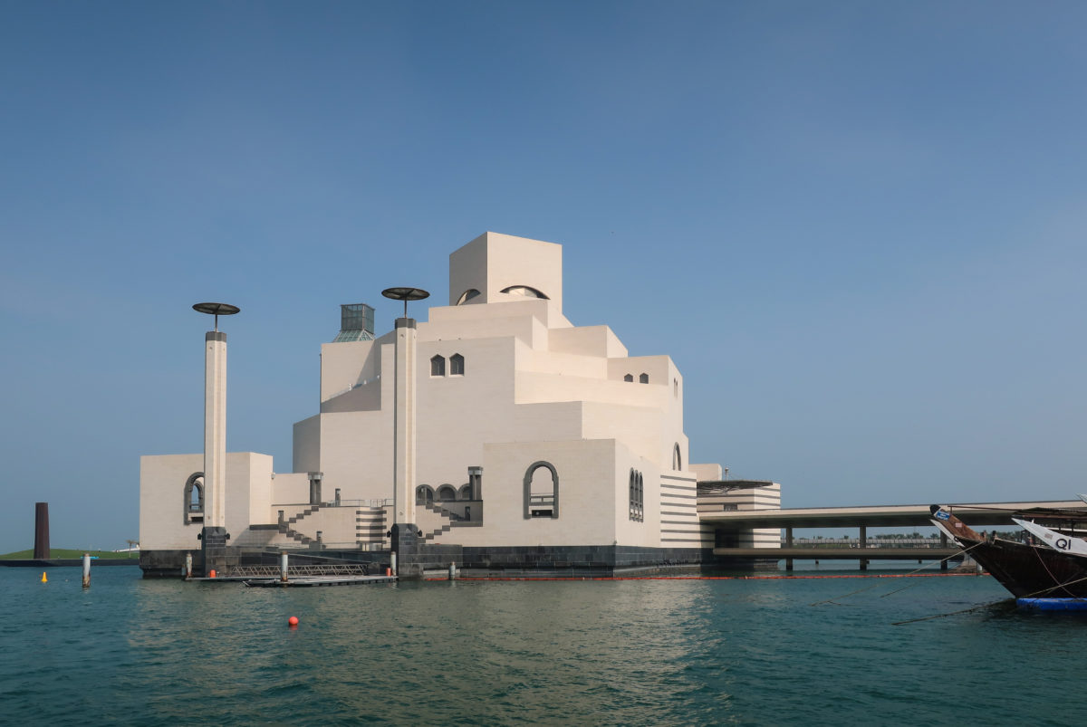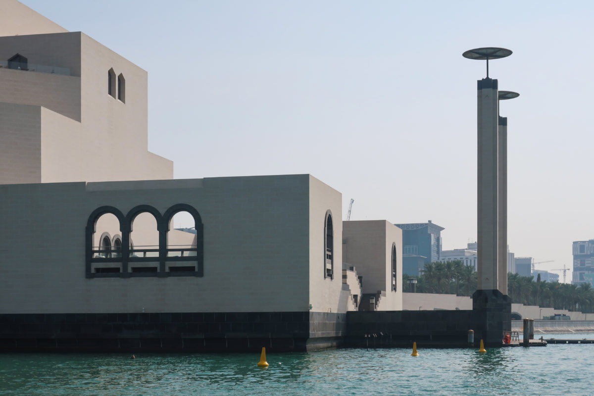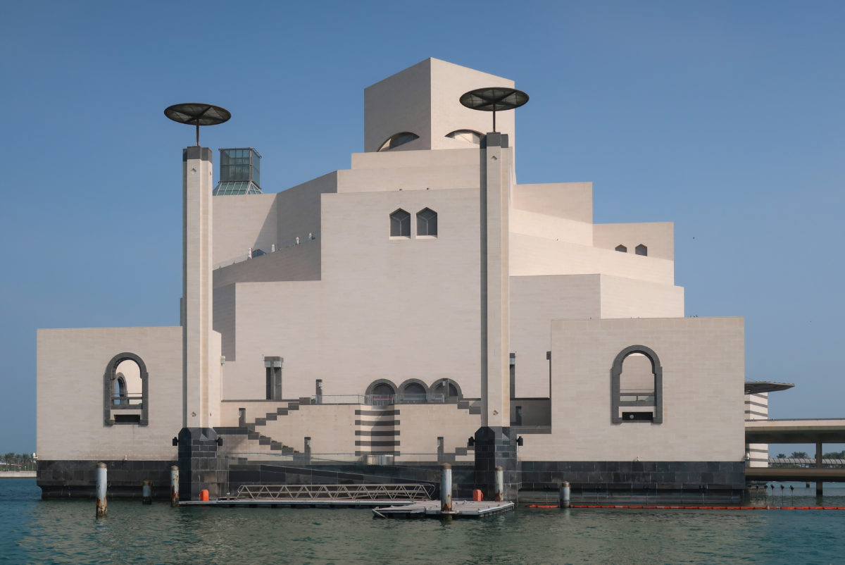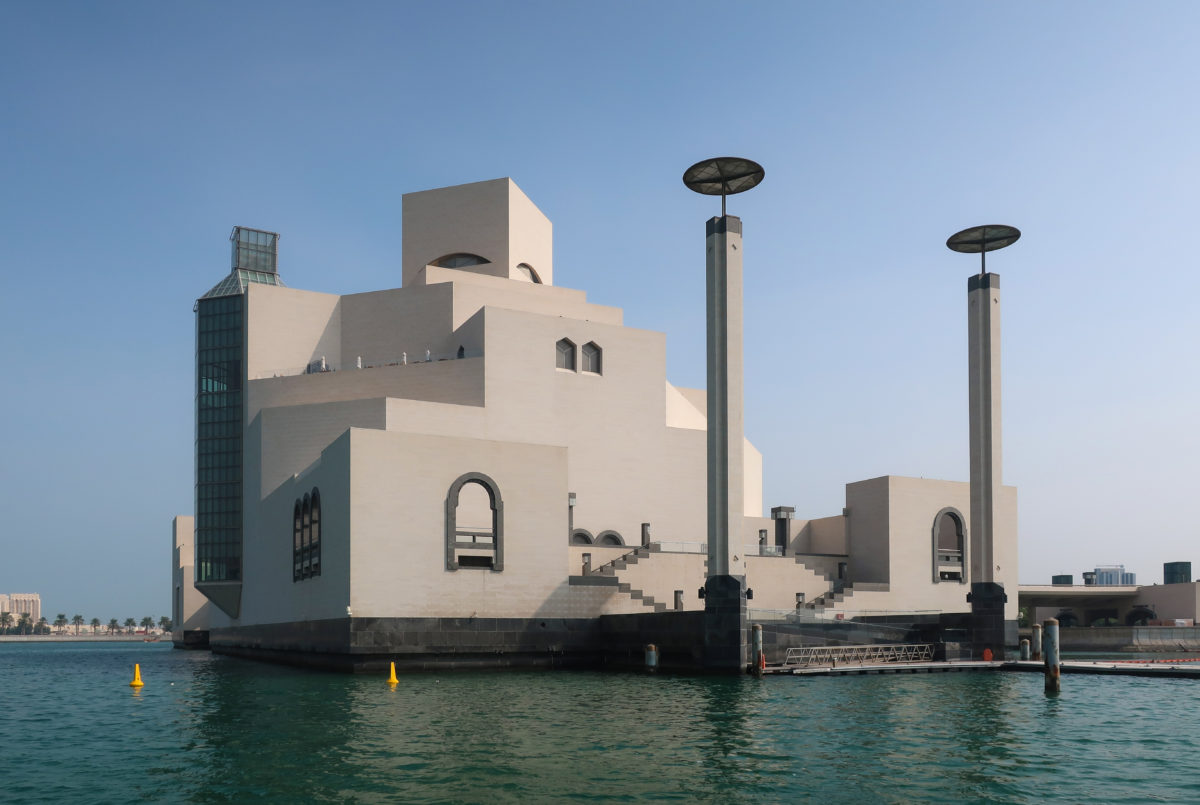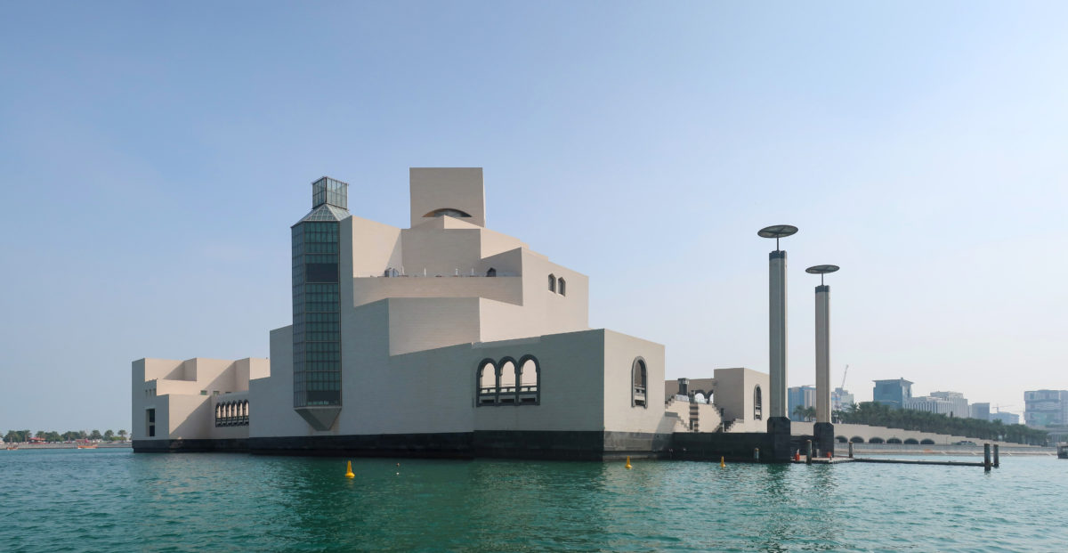 The Museum of Islamic Art in Doha, Qatar, was built on an artificial island located 60 meters from the coast, on the south side of the city’s Corniche, over the waters of the Arabian Gulf.