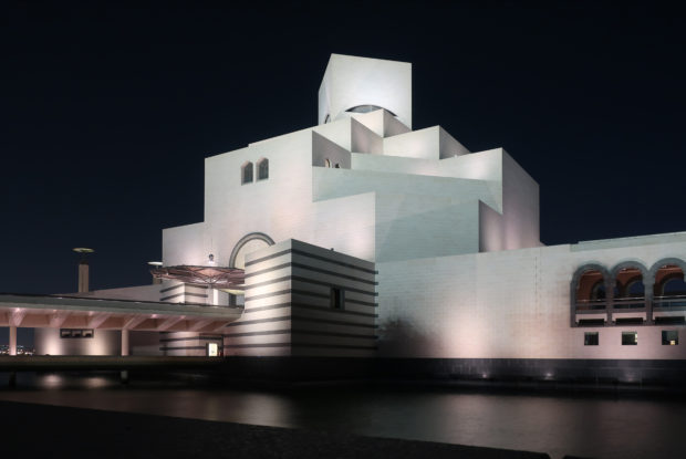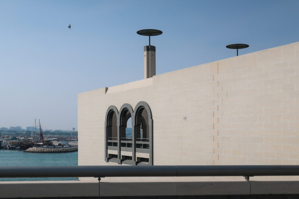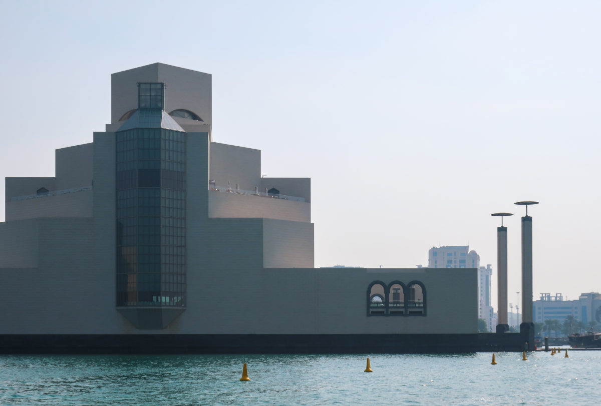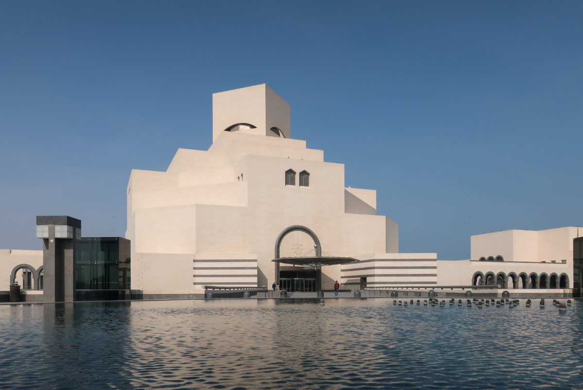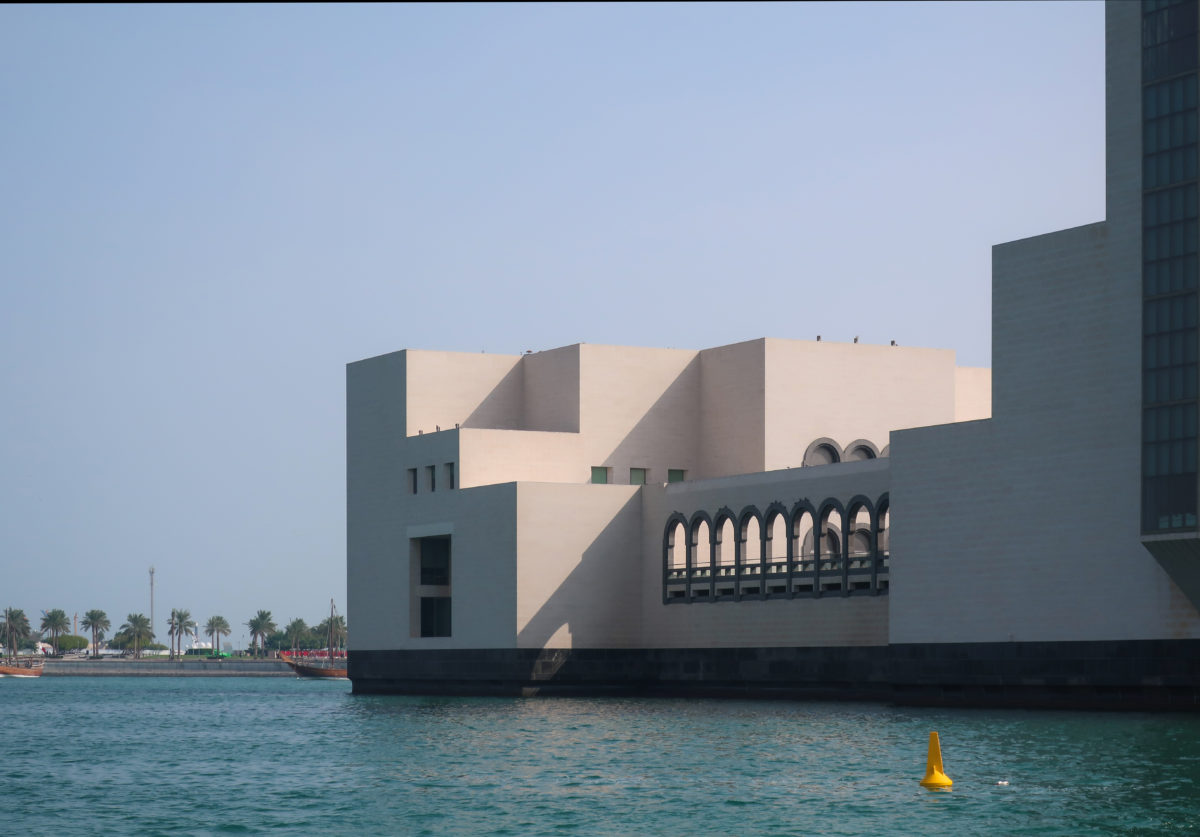 The Museum of Islamic Art in Doha, Qatar, was built on an artificial island located 60 meters from the coast, on the south side of the city’s Corniche, over the waters of the Arabian Gulf.