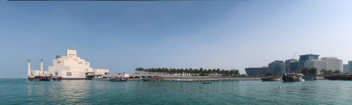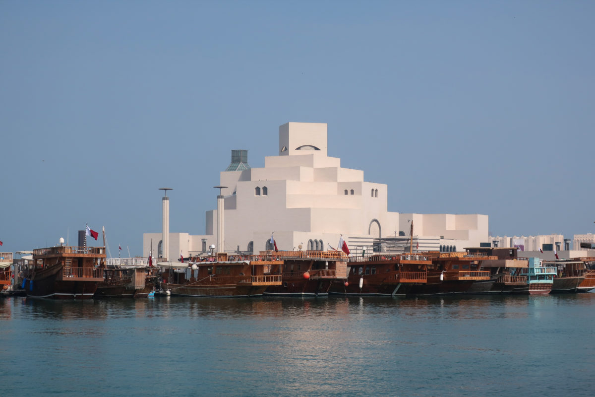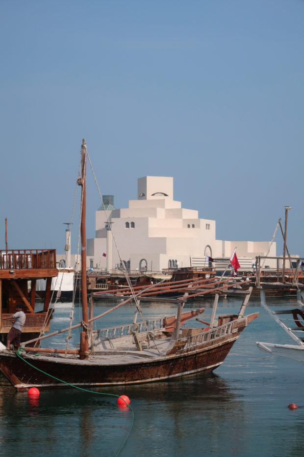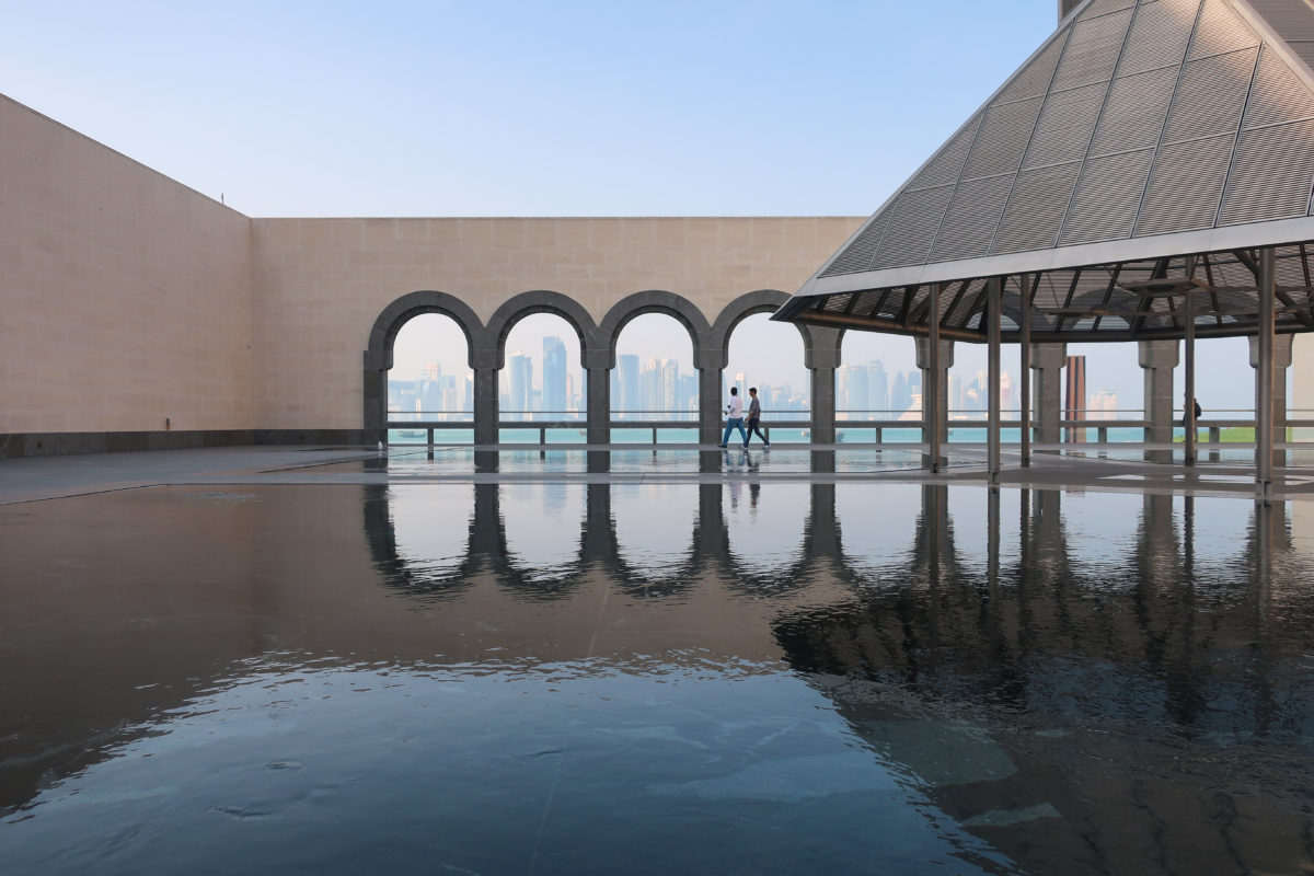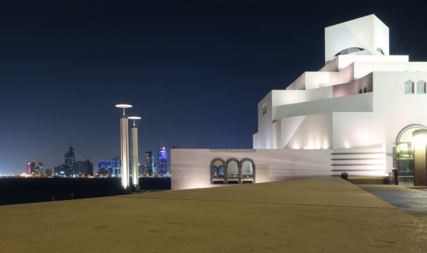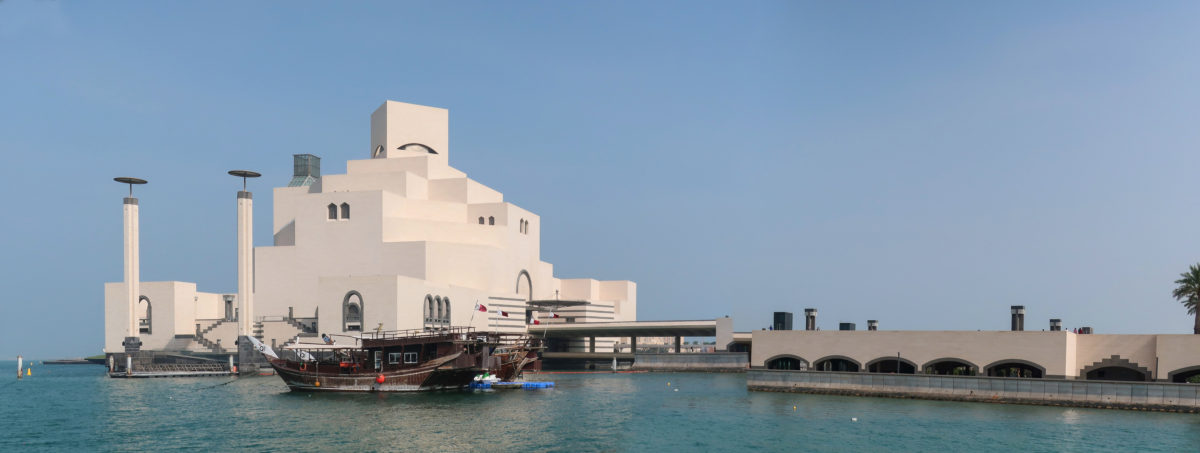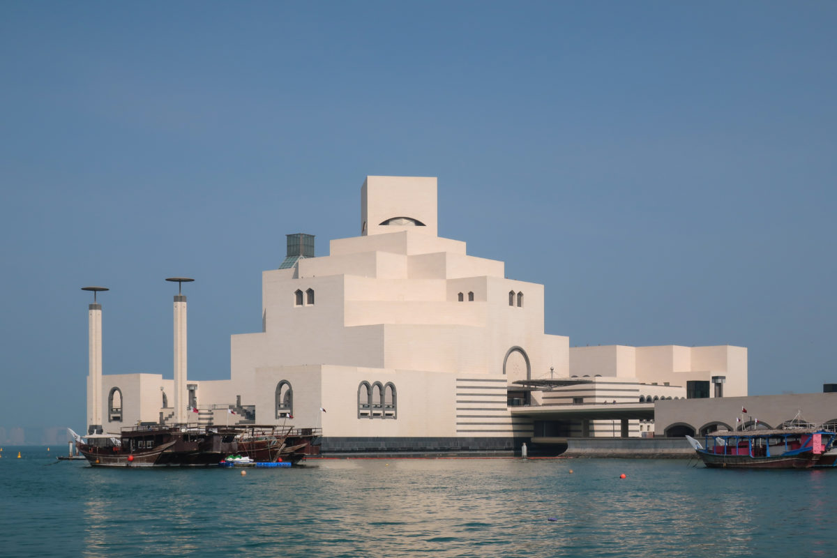 The Museum of Islamic Art in Doha, Qatar, was built on an artificial island located 60 meters from the coast, on the south side of the city’s Corniche, over the waters of the Arabian Gulf.