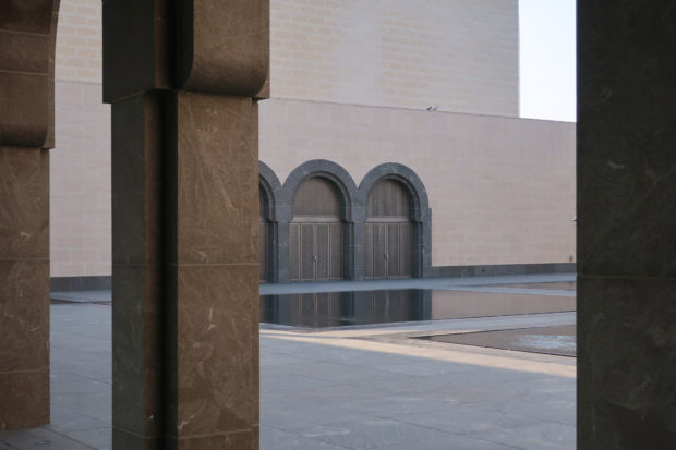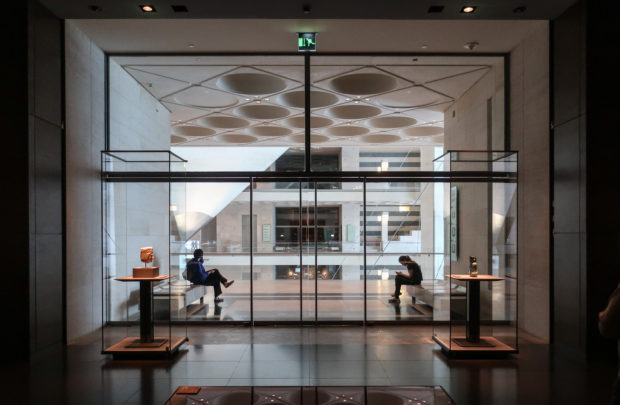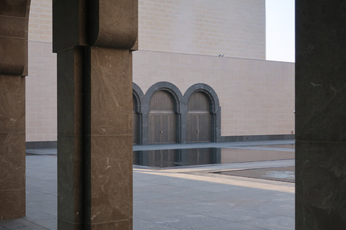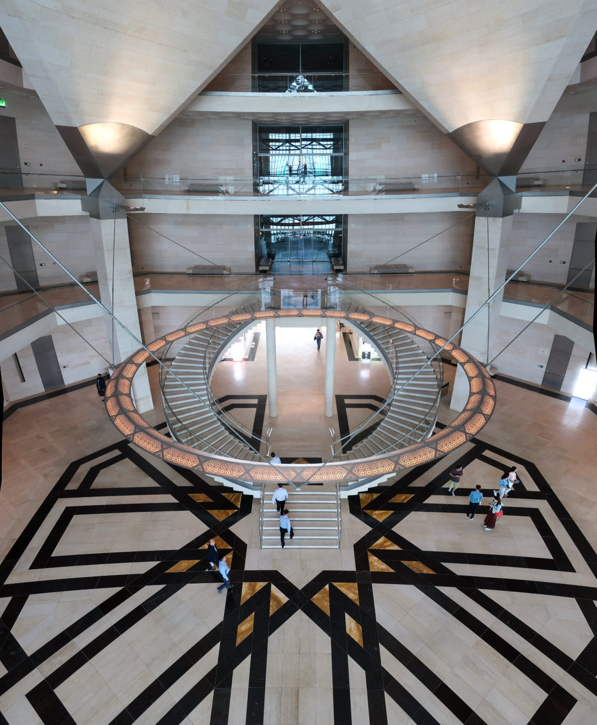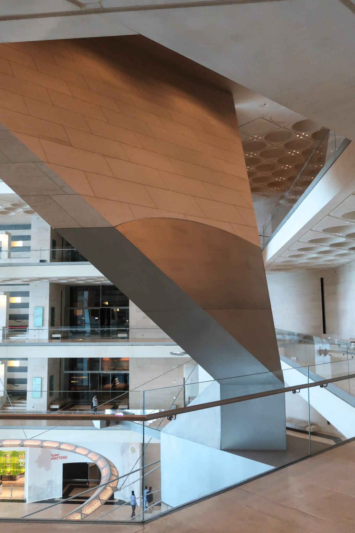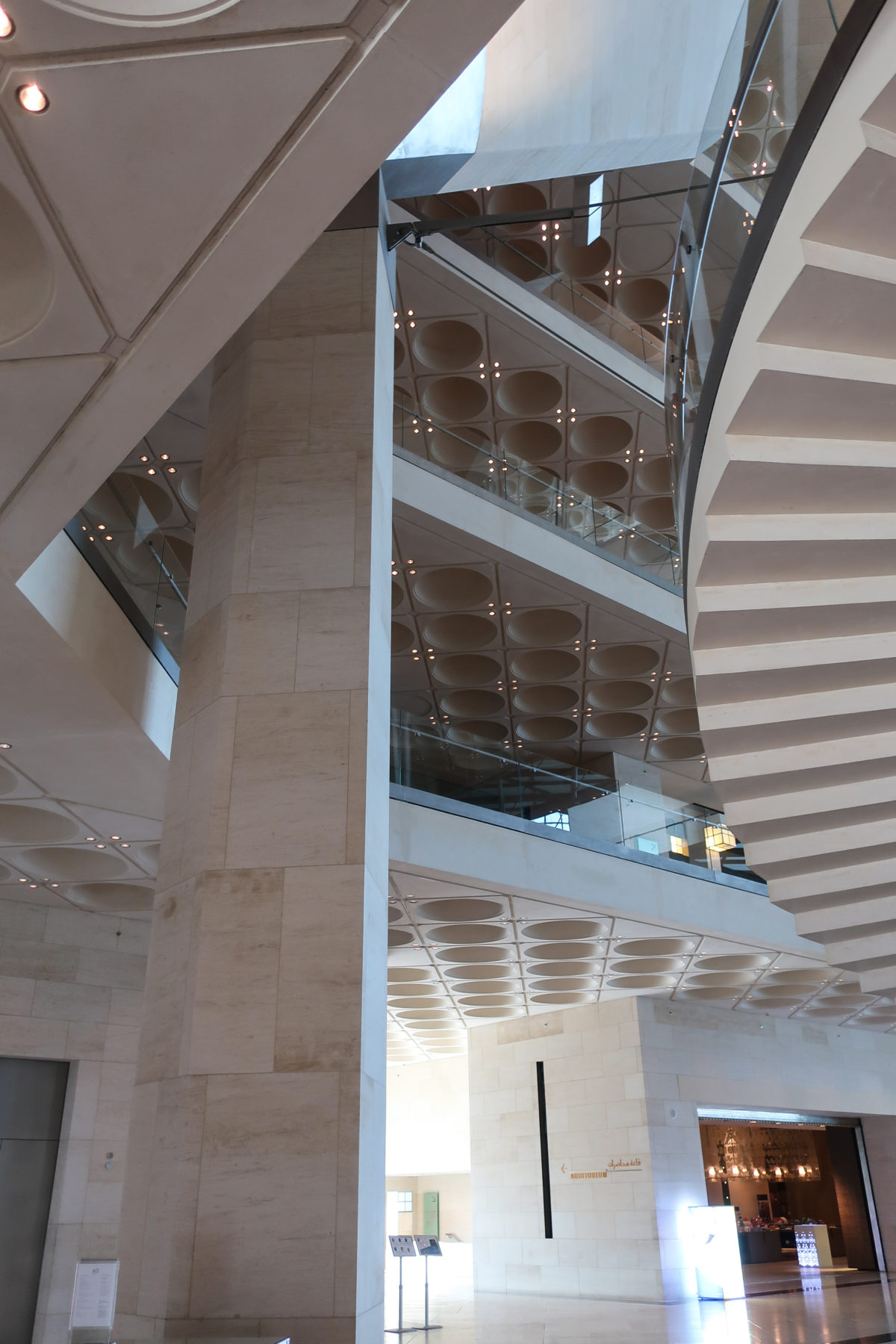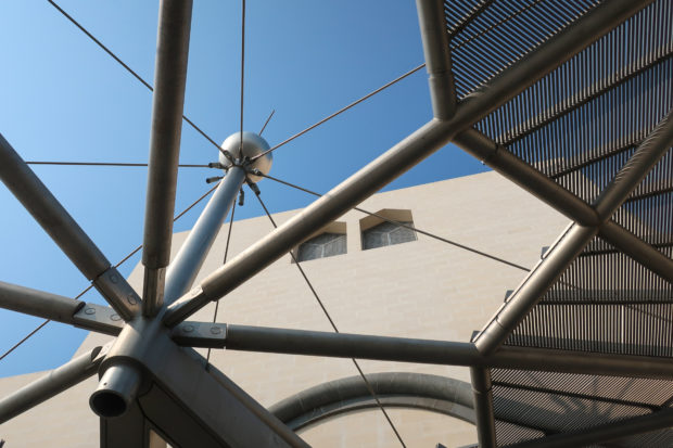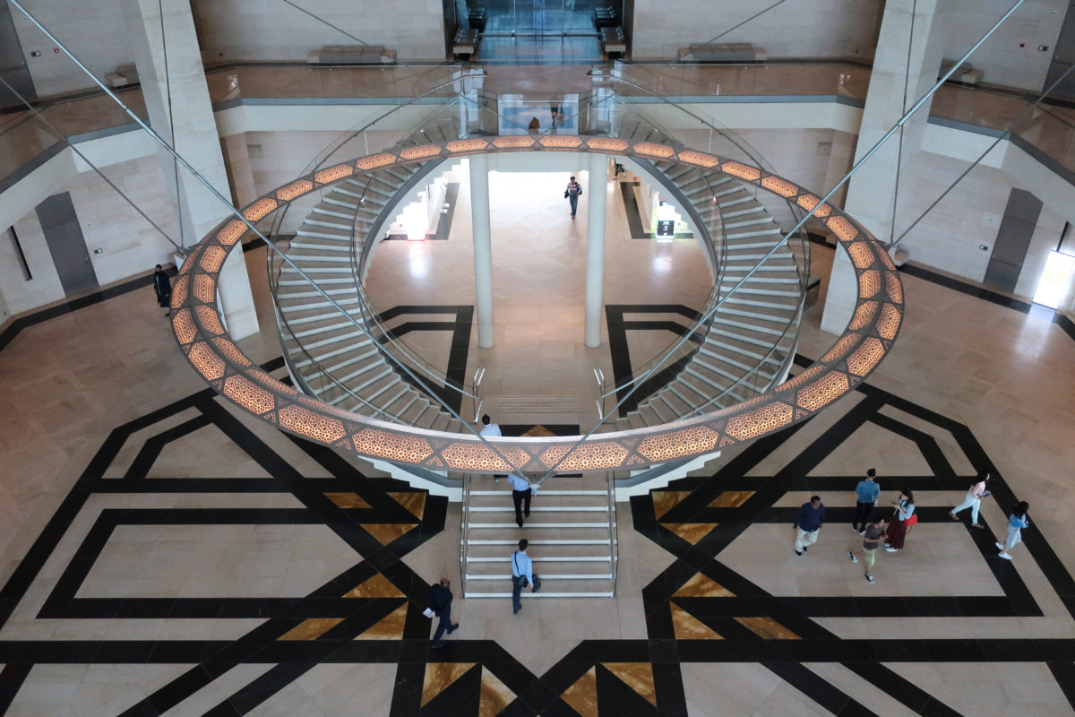Dedicated to reflect the vitality, complexity and diversity of the arts of the Islamic world, the Museum of Islamic Art collects, preserves, studies and exhibits masterpieces that span three continents from the seventh to the nineteenth centuries. The austerity of the exterior of the Museum contrasts with the use of decorative patterns and shapes used by Pei inside the building. Apart from the more elaborate metal canopy of the entrance, the building is essentially flat.