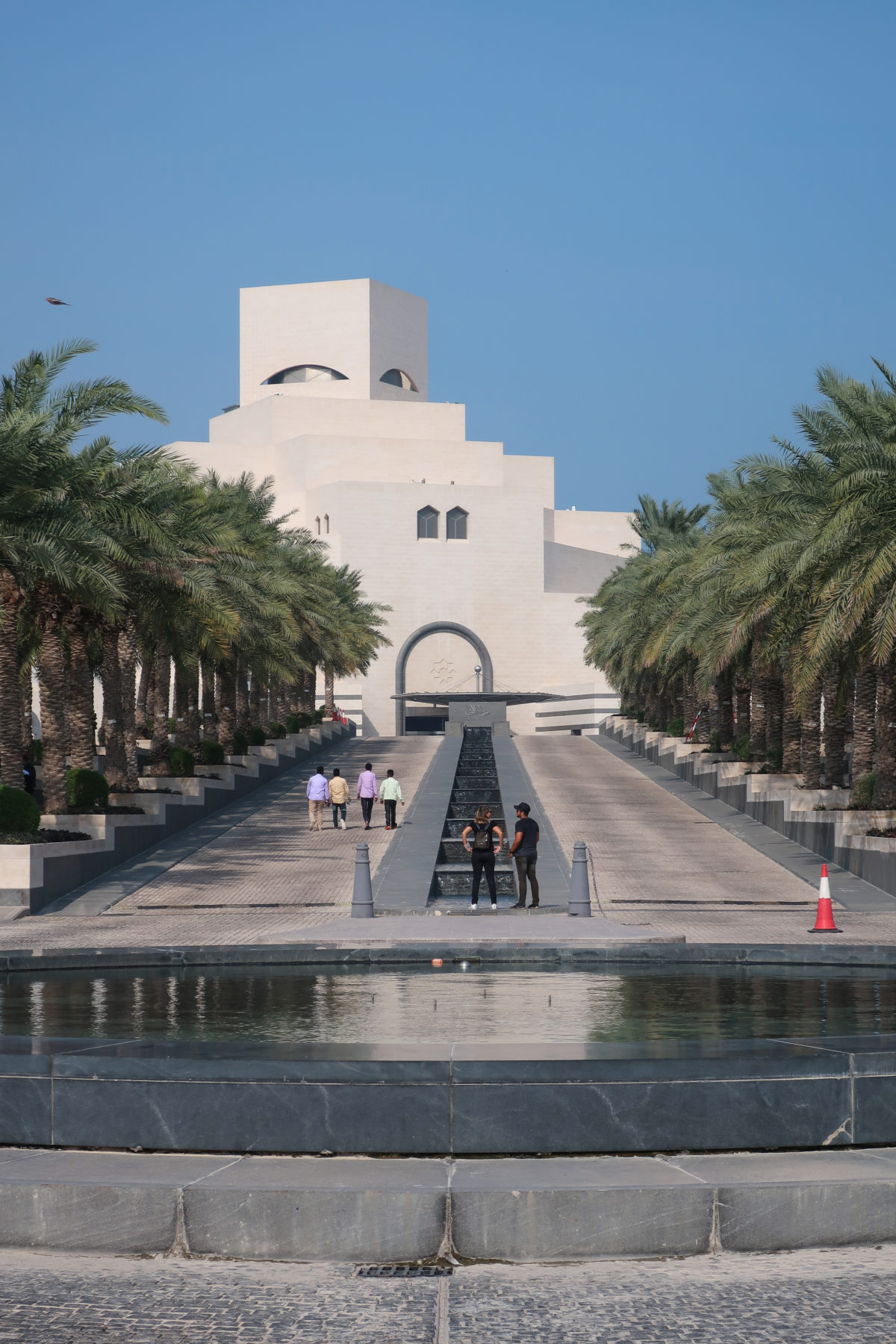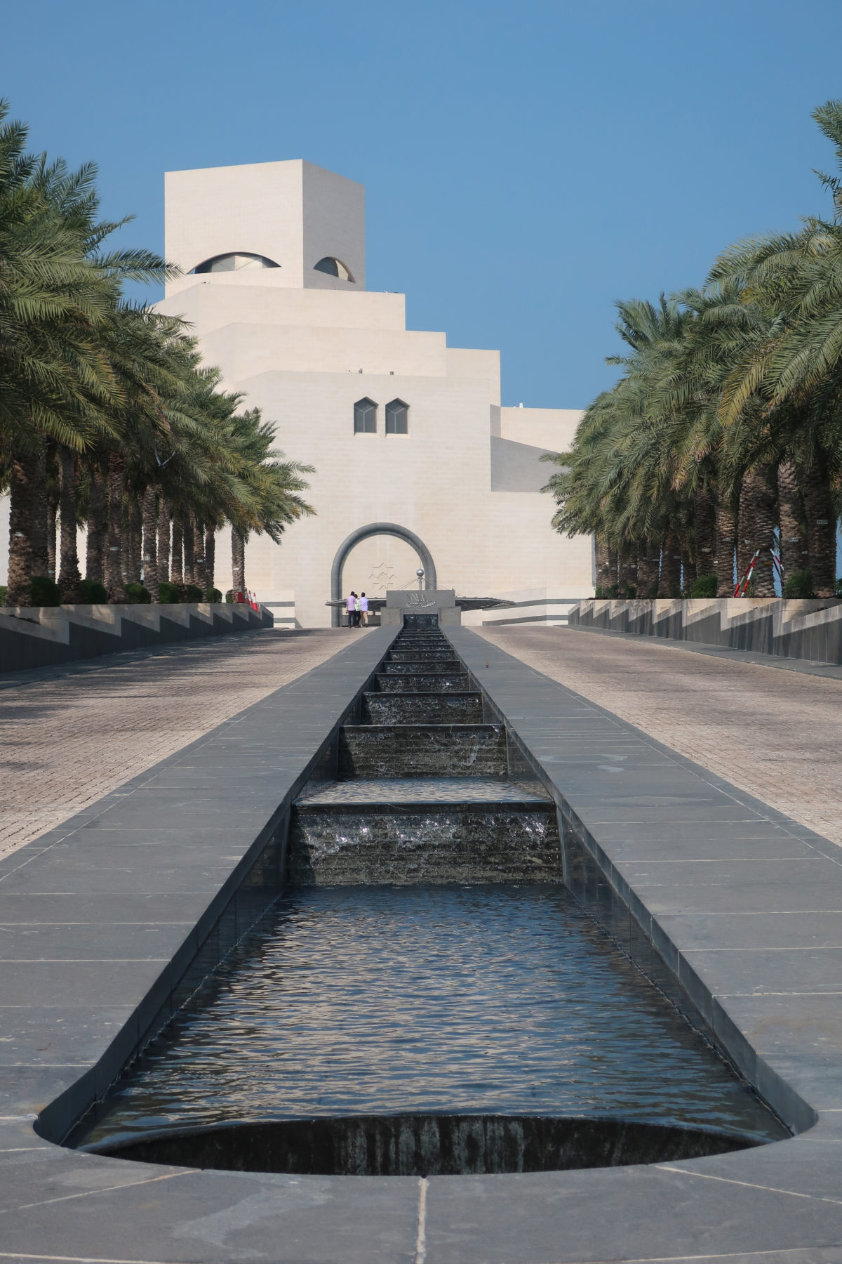 The Museum of Islamic Art is the result of a voyage of discovery made by I.M. Pei, whose quest to understand the diversity of Islamic architecture took him on a world tour. During visits to the Great Mosque of Cordoba, Spain; to Fatehpur Sikri, a Mughal capital in India; to the Great Mosque of the Umayyads in Damascus, Syria and the ribat fortresses in Monastir and Sousse in Tunisia, he found that the influences of climate and culture led to many interpretations of Islamic architecture, but none evoked the true essence he sought. The inspiration for the final design was the 13th-century saber (source of ablutions) of the Ahmad Ibn Tulun Mosque in Cairo, Egypt (9th century). In the “… austerity and simplicity …” of the Sabil, Pei said, he found “… a severe architecture that comes alive in the sun, with its shadows and shades of color …”. The sable offered an almost cubist expression of geometric progression, evoking an abstract view of the key design elements of Islamic architecture.