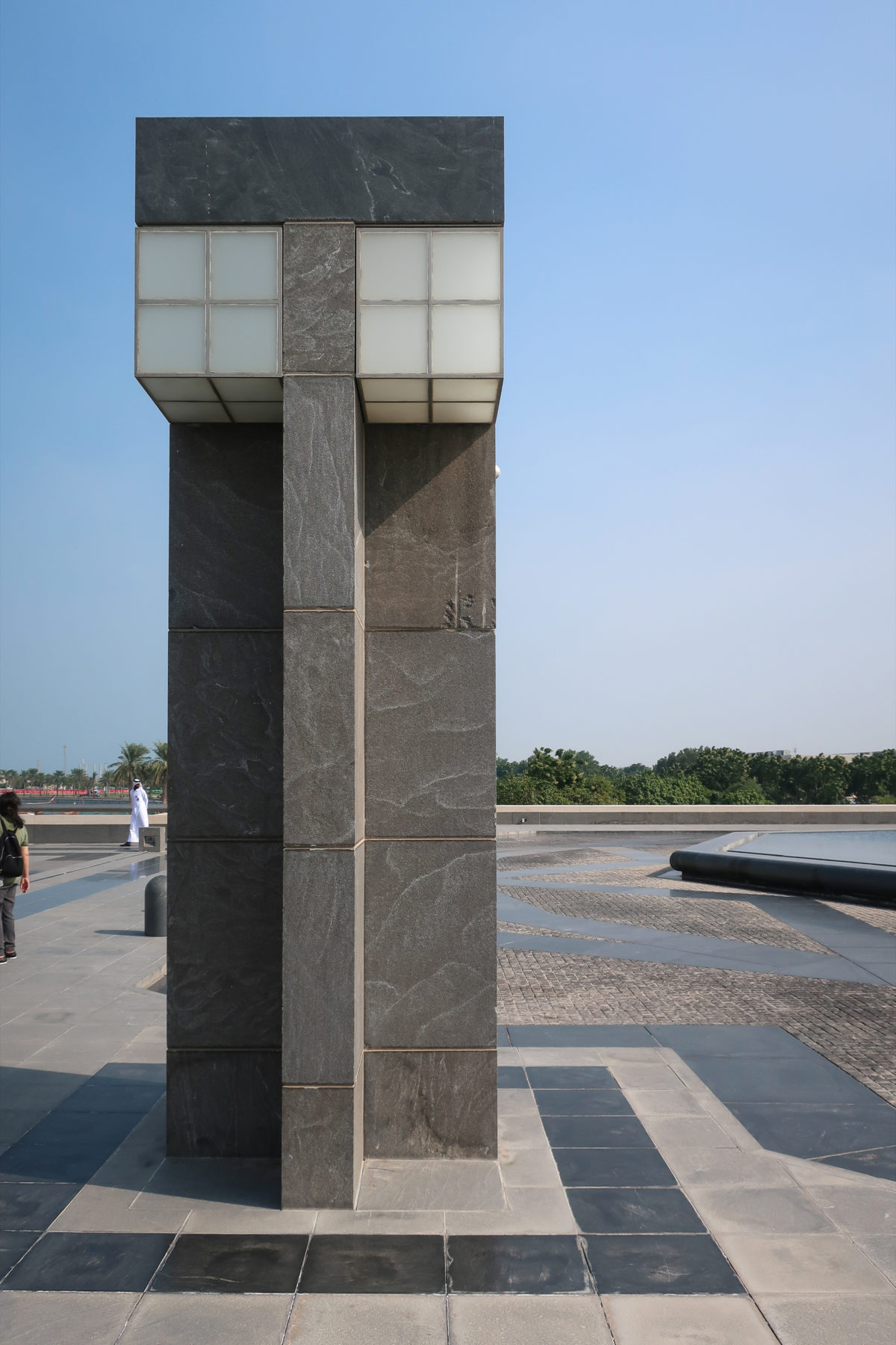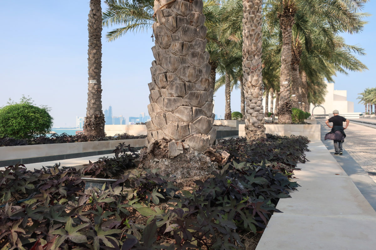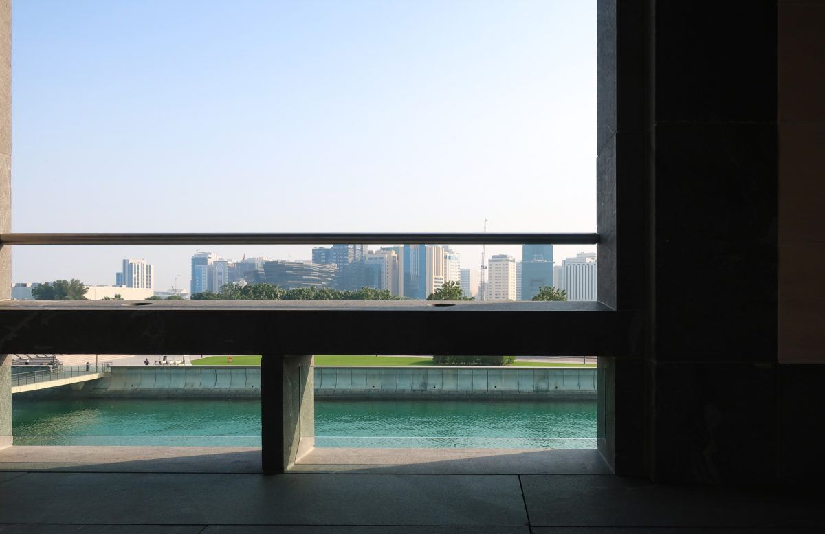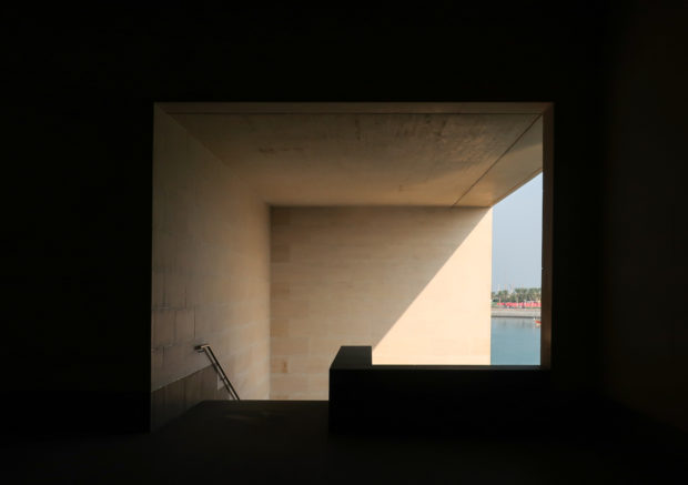 Pei refused to build the museum at any of the proposed sites on the Corniche, suggesting the creation of an independent artificial island somewhat away from the promenade, and thereby ensuring that future buildings never invade the museum. A park of approximately 64 acres of dunes and oases creates a new peninsula behind the Museum, offering refuge to the Persian Gulf from the north and to industrial buildings in the east, in addition to a picturesque backdrop.