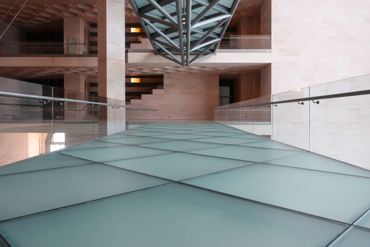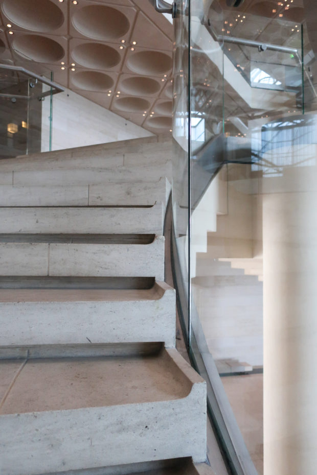 The galleries are literally made to allow visitors to appreciate objects of utilitarian origin. The cabinets created by Wilmotte fade and float in the air to improve the works. Wilmotte & Associés managed not only to give visibility to these objects, but also, by mutual agreement with the local administration and I. M. Pei, to impart all the majesty they deserve as works of art. The solidity and subtlety of the accessories are manifested in what Pei sought and what he calls “the essence of Islamic architecture.”