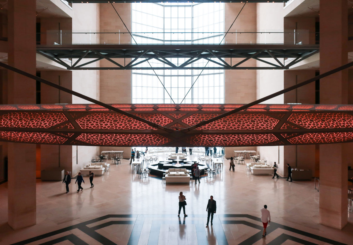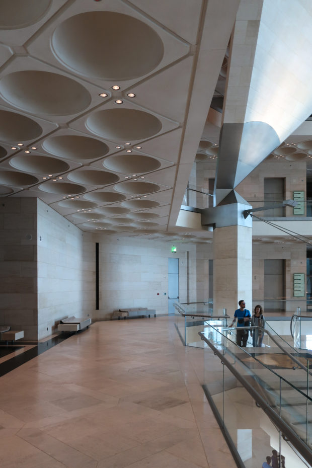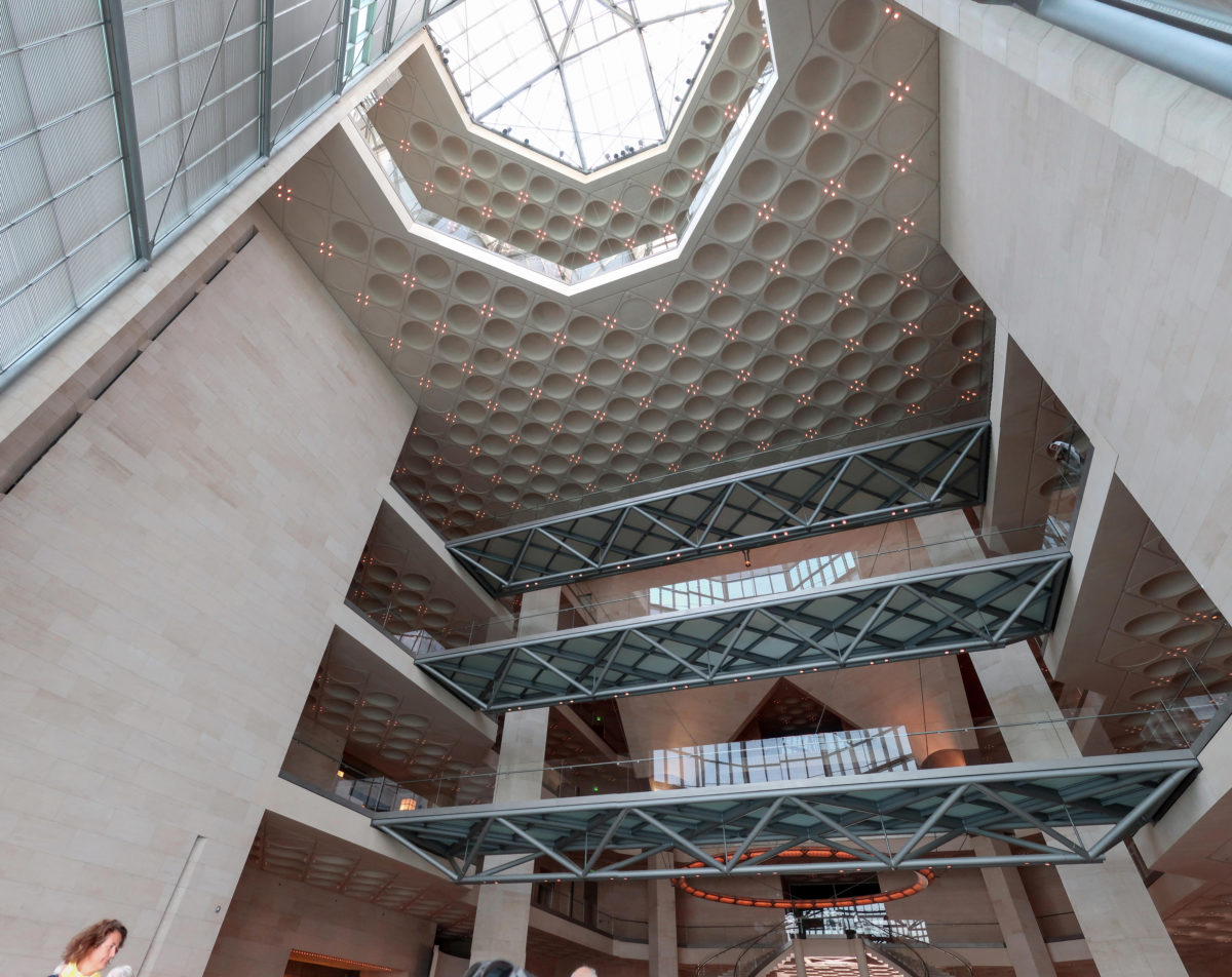 Its faceted exterior planes and the breadth and layout of its interiors speak of a modern architecture but also of the essence of Islam. From the last century the culture is what has promoted innovation in this part of the Gulf, and with the fusion of the work of the architect IM Pei and the French designer architect Jean Michel Wilmotte, a bridge has been built that crosses the centuries, linking the culture Islam material with art and architecture.