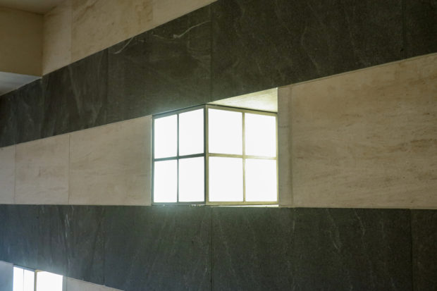 As one approaches the building, the entire weight of the structure begins to decrease, and the forms become more imposing. The bridge, flanked by rows of tall palm trees, is placed diagonally to the entrance, which makes the stacked geometric shapes appear more angular and the contrast between the light and the most extreme shadow. Soon some traditional details begin to appear: the two small arched windows above the entrance or the covered gallery that links the museum with an educational center. These touches seem minor, but they provide a sense of scale, so that the size of the building can be understood according to the size of the human body.