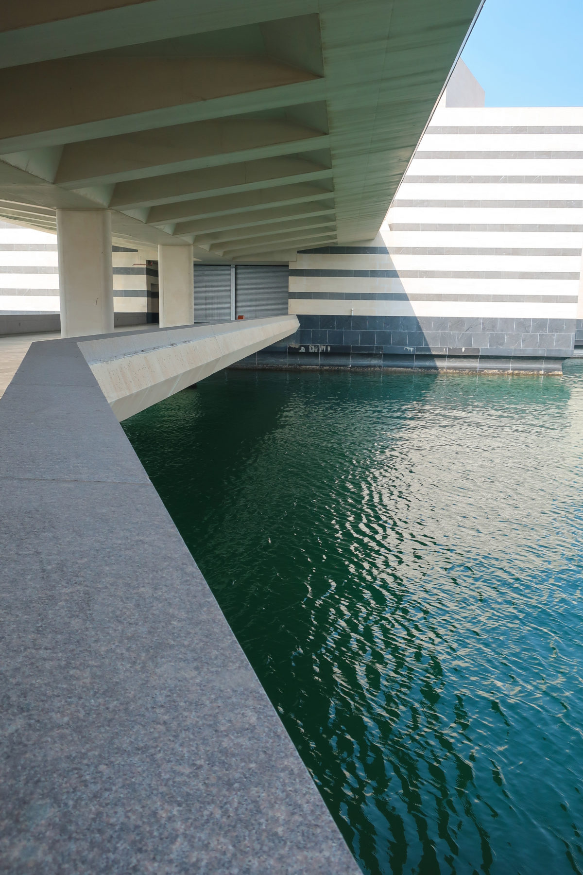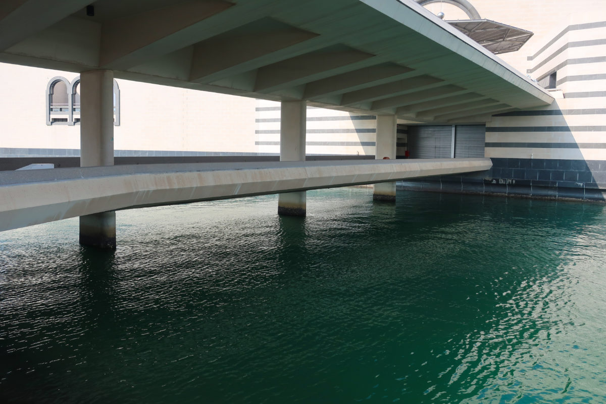 The construction of the substructure for the Islamic Art Museum building, a structure completely surrounded by water, involved the creation of a structural filling platform contained within a specially designed “driven” concrete pile enclosure. Appropriate temporary works and dehydration schemes were implemented.