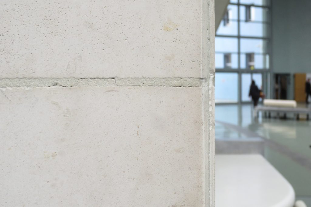 The building as a whole is divided into four blocks running north to south separated by corridors of light.