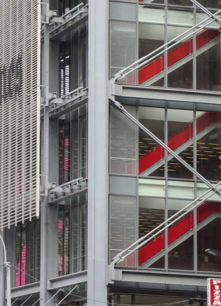 Renzo Piano‘s design was quite controversial, as it opposed the functional layout of the typical office tower with a central service core.
