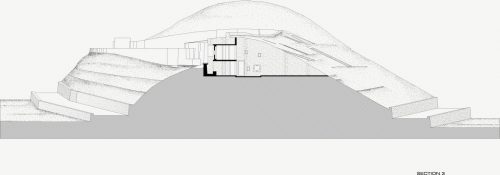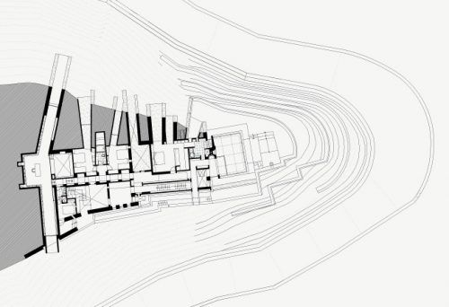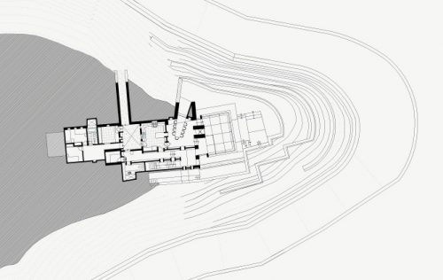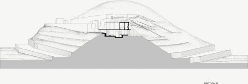 In the construction combining reinforced concrete with stone walls, passing the house, part of the landscape of the hill.