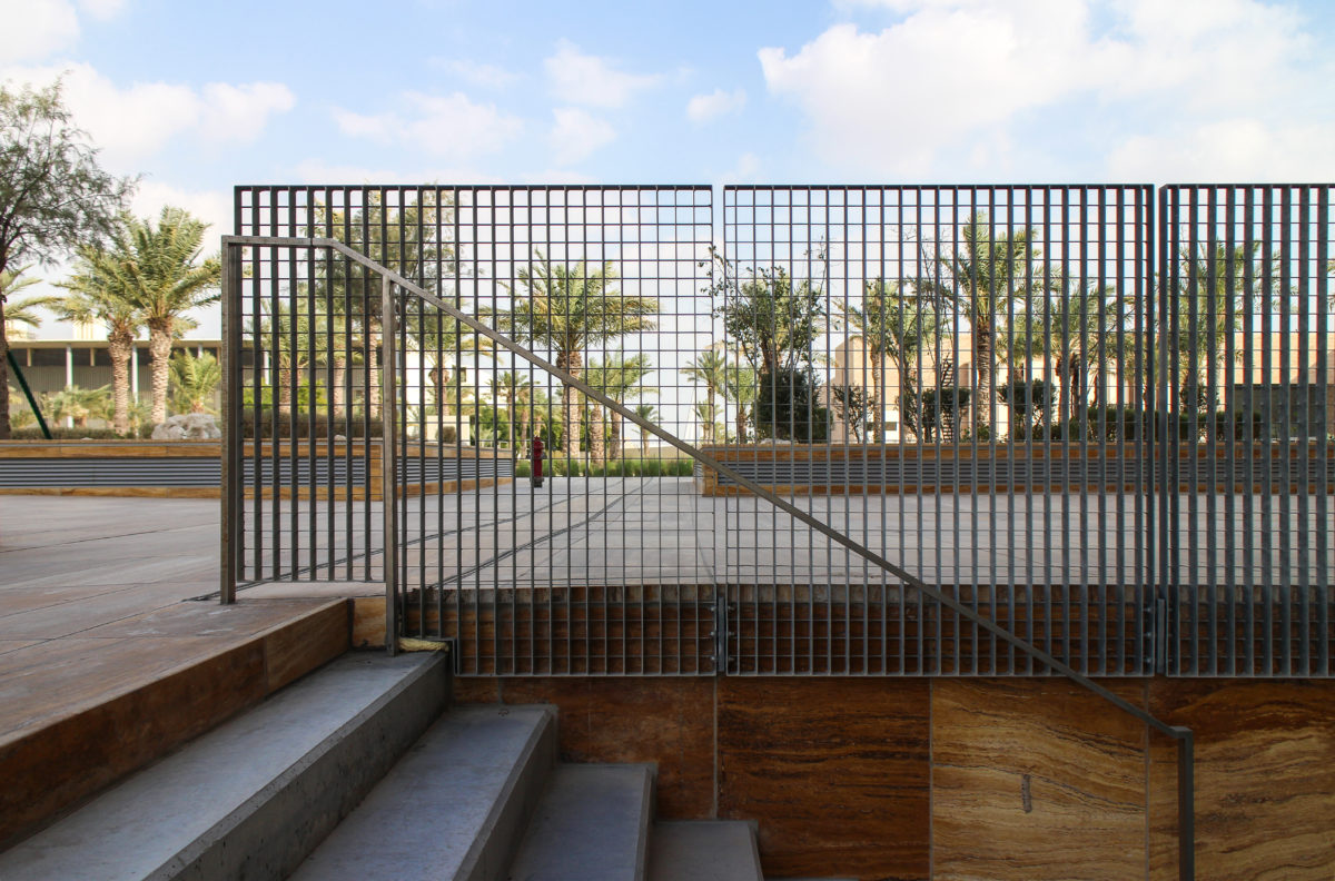 The garden was created with a regular system of square planters on the flat and hard surface of the roof, which gradually change in size, height and distance north to south. The generous sizes of the sowing beds, from 14.4 m to 6.6 m by 0.45 m at 1.2 m deep, provide the opportunity for a wide range of diverse biotopes, each consisting of a variety of plants, shrubs and trees that complement and stimulate each other. Trees, shrubs, flowering plants and indigenous bulbs, which tolerate heat and salty wind are combined with species from other countries in the same resistance zone as Qatar.