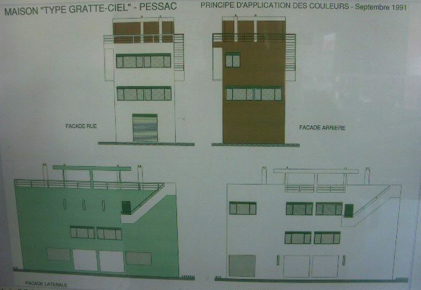 This house is the most characteristic of the movement in this industrial town, is representative of the entire flag. It extends vertically into three levels with a 5x5m module, more than half module in the center and half an auction module on services that lead to the roof or fifth facade. This cell shimmers to have a block of two houses. The hanging garden and access to them by external stairs lead us to the terrace.