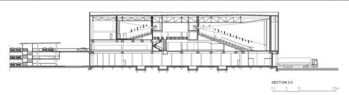 The active image of the facade expresses the active nature of the place. Dynamic is reinforced by using metal clusters of different colors. The shape of the cover has the specific function as easily be perceived from points distant views.