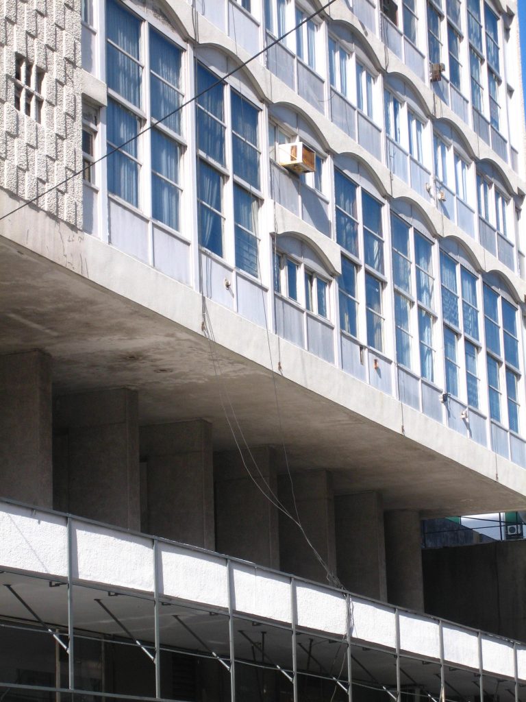 A shopping arcade is accessed by two streets and the Tower which houses the departments of housing in San Luis Street at number 1836.