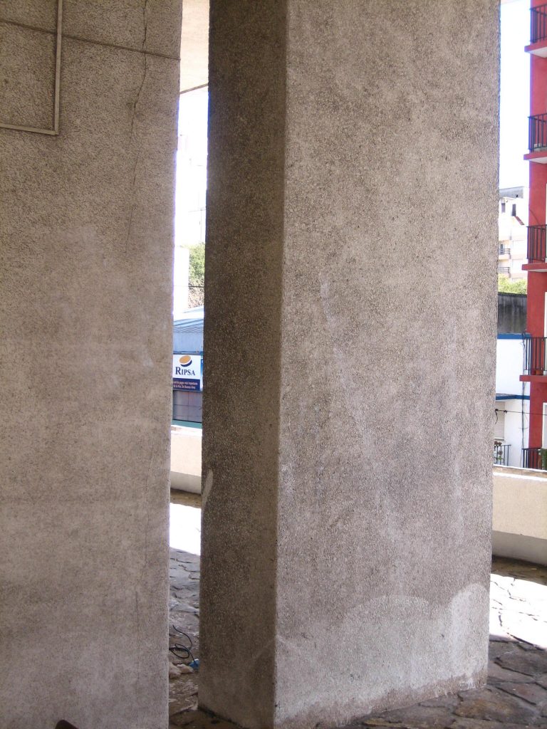The structure is reinforced concrete and plaster on both front filler was used as this material mixed with shell, which gives a particular surface roughness.