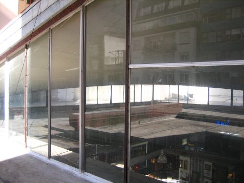 The commercial property has double height and are built around a central courtyard, also with double height covered by a vault of ruled surface, a hyperbolic paraboloid, enclosed by a glass wall that allows natural light received by the gallery.