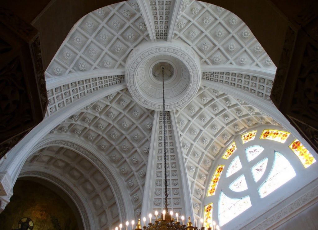 The austere exterior of the building contrasts with the luxury interior, especially the chapel and oratory, in which Italian ornaments abound. The Pantocrator is magnificent replica that enriches Hagia Sophia on Istanbul, Turkey.