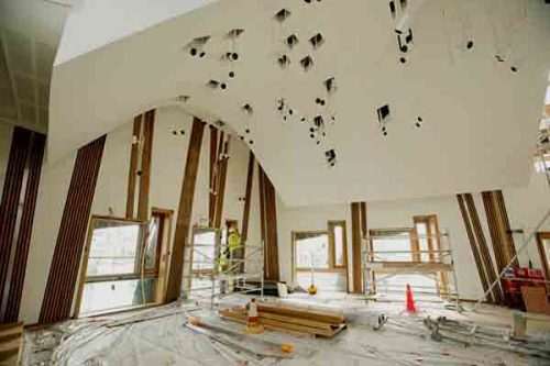 - Theassembly buildings have been designed in prestressed concrete to get lights for more than 14 m.