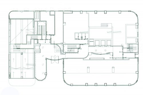 The building consists of a lower body in four heights and a tower, built with industrial materials, organized in a conventional manner with a sturdy base, and regulate stem and scored formed from various curved geometries, reminiscent of the towers medieval.