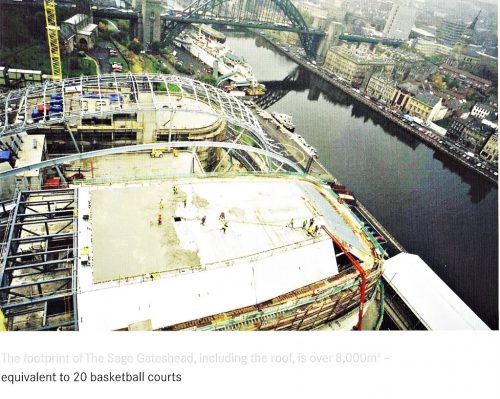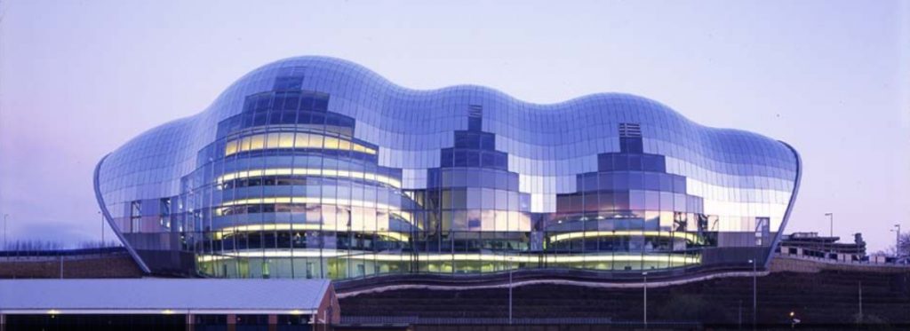 The building was erected on the banks of the River Tyne, in St Mary’s Sq, Gateshead Quays, Gateshead, Tyne and Wear NE8 2JR, England and has become a local landmark and heart of an interesting project from the time of its completion regeneration overlooking the front on both banks. It is located next to the new pedestrian Baltic Millennium and Tyne Bridge, with its large arch that is repeated in the form of the cover of The Sages.