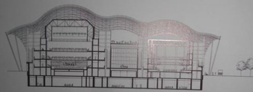 Each auditorium was conceived as a separate enclosure, but due to strong winds blowing along the coast thought it best to group them under a single cover protector. As a result, the assembly is protected by a wide roof shell which extends in the open area and to be retracted beneath the supports. Inside addition to the auditoriums are four bars, shops, an information center and locker.