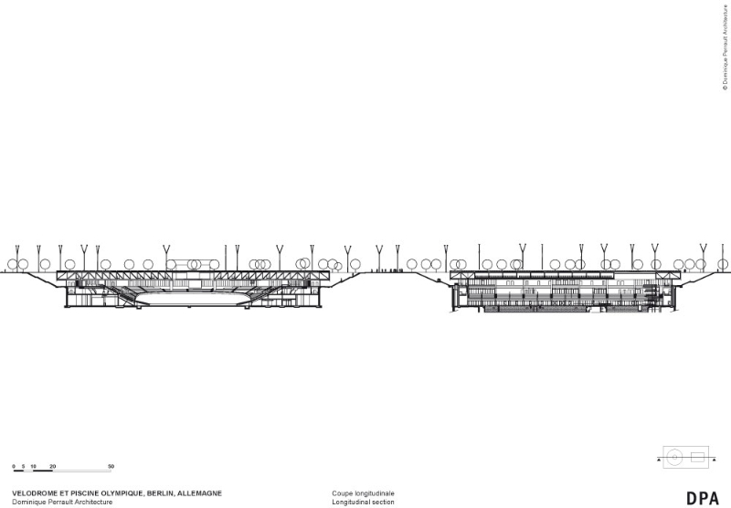 The project is linked to the reunification of the two Germanys. Building on the nomination of the city of Berlin for the 2000 Olympics, finally celebrated in Sydney, Senate of the German capital turned its commitment to a unifying project of redistribution and linking the two parts of the city, the Olympic project. Under these rules were designed not only sports facilities, also a number of networks that served to them. It is within this context, the enthusiastic and controversial time, the city of Berlin created an international competition for the design of the Velodrome and Olympic Swimming Pool.