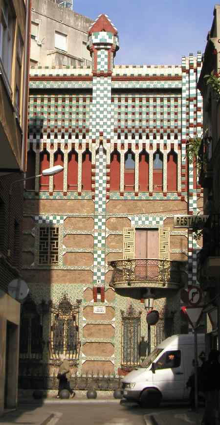 Gaudí found himself at that time in the first period of his career, which was characterised by the use of an architectural language of great constructive simplicity, in which the straight line took precedent over the curved. Stylistically, it coincided with a period of oriental influence, when the structural forms and decoration corresponded to his taste for oriental art, principally Mudejar, Persian and Byzantine, as seen in other of his works such as the Güell Pavillions, Güell Bodegas (wineries) and El Capricho of Comillas.