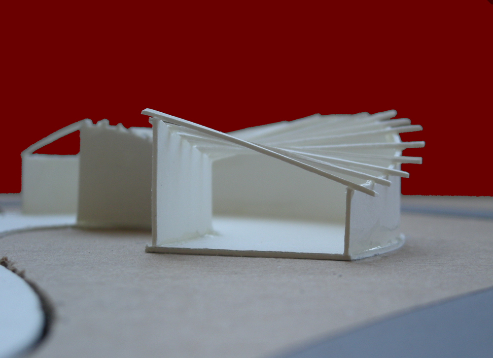 From the moment the way the site is reminiscent of an ancient Greek theater, semicircular and focused on a particular point where the action happens in this case the bay. And from a formal point of view the building tries to imitate these forms to a smaller scale and adapt to the needs of the program.