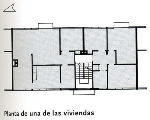 The block of houses by Mies located on the top of the hill, elongated and narrow is built with steel structure, so that the support structure is independent of the internal walls.